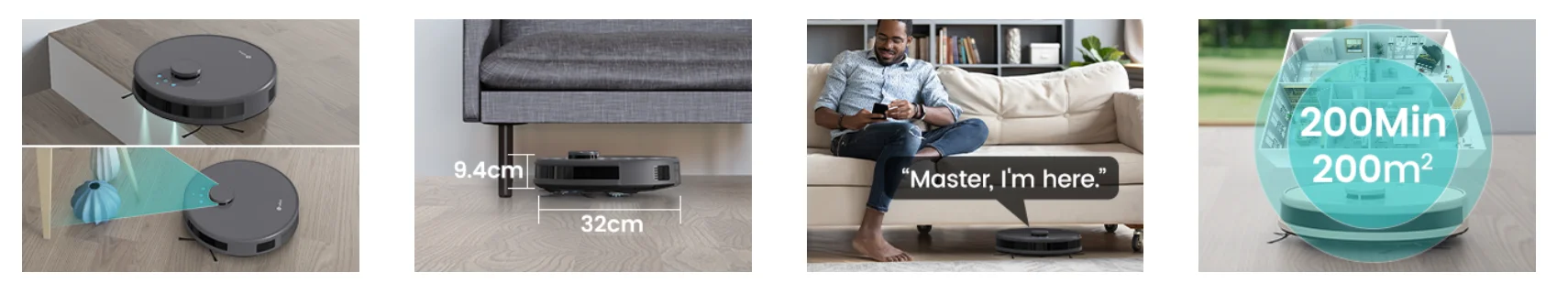 Lefant M1's flexible and compact body ensures that every corner of the house can be mapped for greater cleaning coverage.