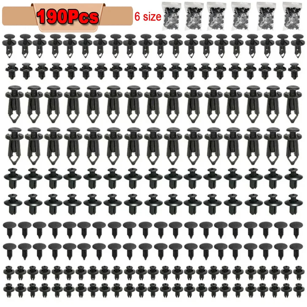 • 190PCS Car Retainer Clips 6 Sizes – Automotive Plastic Fasteners Kit for Auto Trim Panel Bumper Body Repair Tools