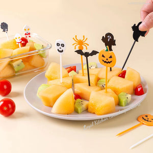 10pcs Halloween Fruit Fork Cartoon Children Cake Dessert Pick Toothpick Lunch Pick Food Fork Bento Party Decoration Random Style