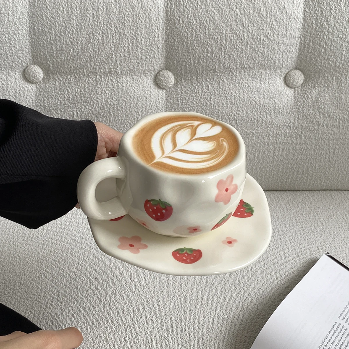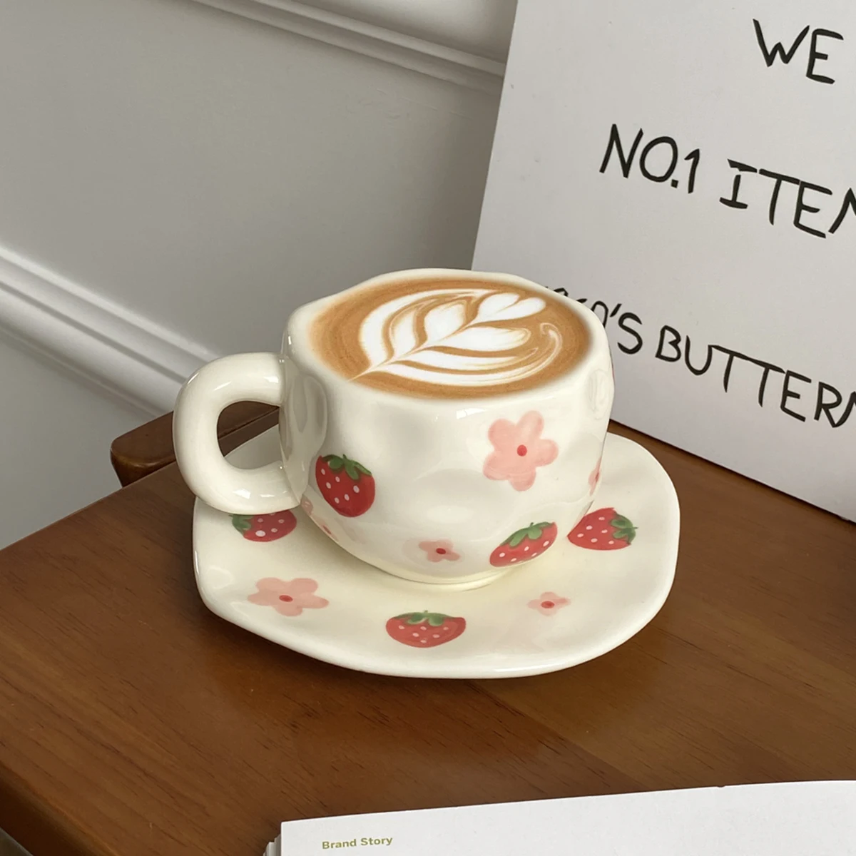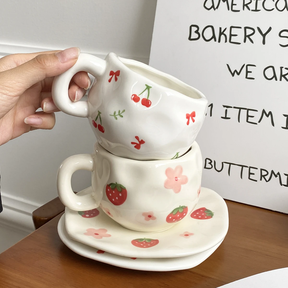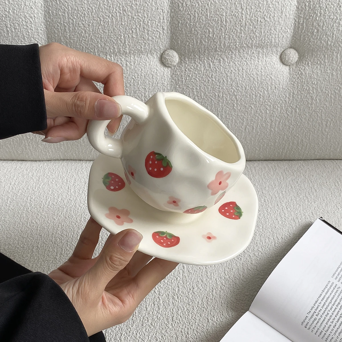 1Set Asymmetrical Fruit Ceramic Coffee Cup and Saucer, High-Looking Creative Hand-Painted Coffee Cup and Saucer, Suitable for Home Drinking Water, Coffee Shop Latte Art Cup, Party Coffee Cake Cup and Saucer, Gift Giving