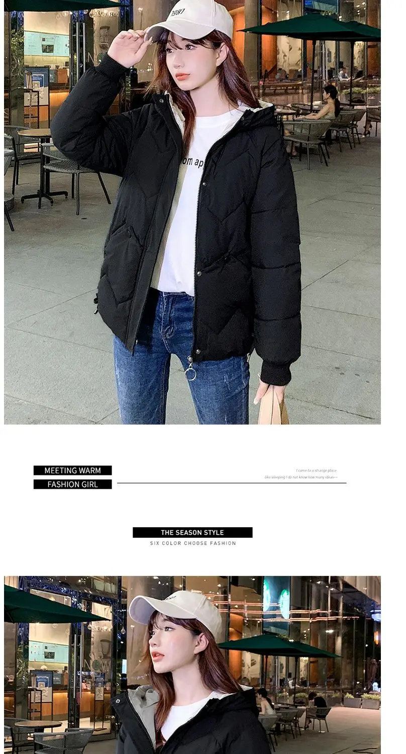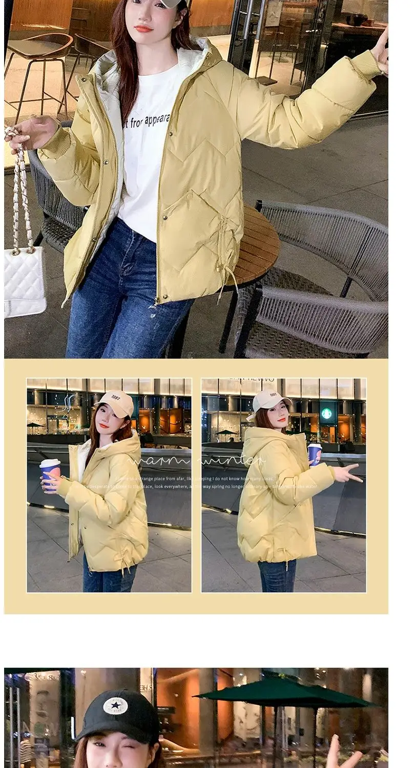 2023 Winter New Parkas Women Short Overcoat Thick Hooded bread Cotton Padded Jackets Coats Female Outwear loose cotton jacket