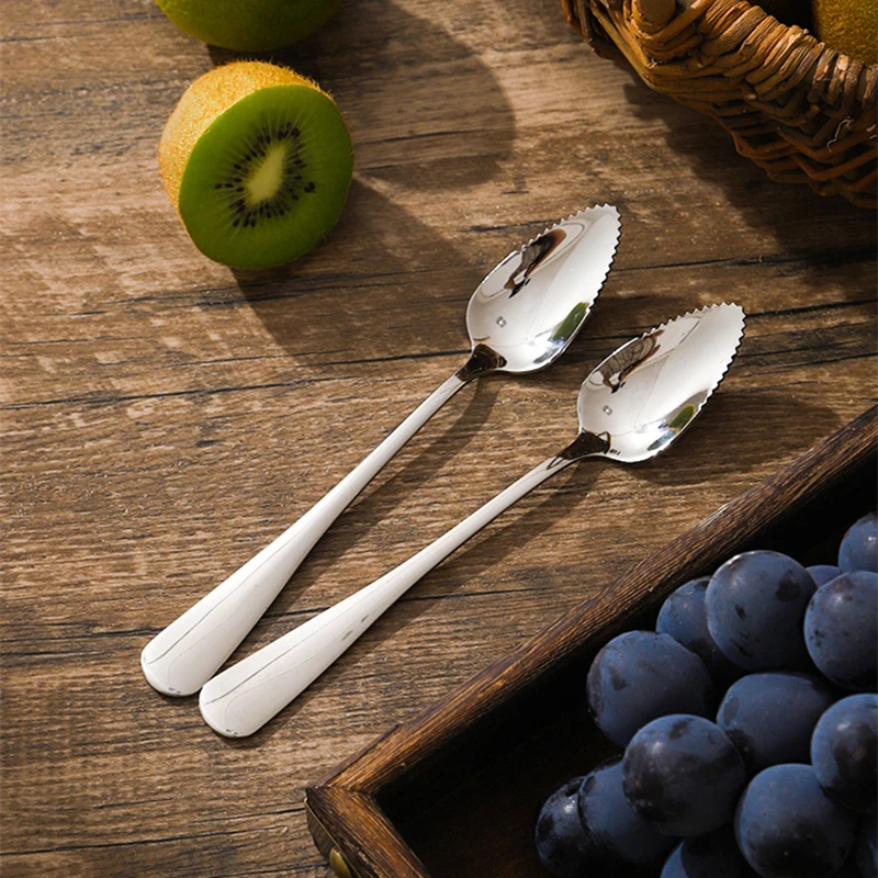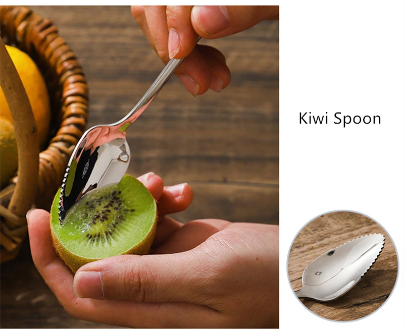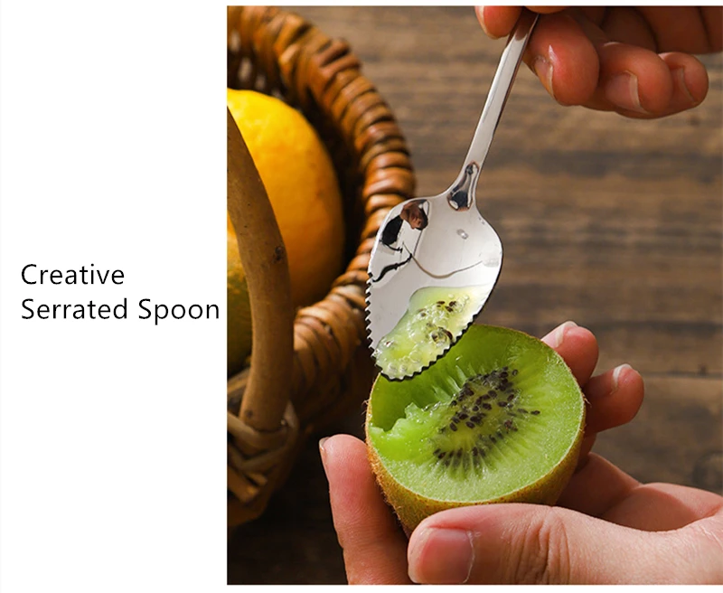 304 Stainless Steel Kiwi Mango Spoon Multifunctional Serrated Edge Fruit Scraping Mud Cutting Utensils Kitchen Accessories Tool