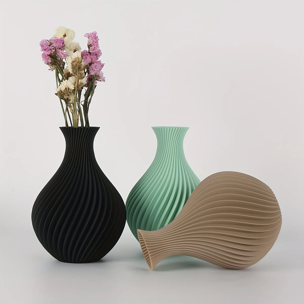 3D Printed Art Vase with Retro Textured Design - High-Quality Plastic, Durable and Resistant