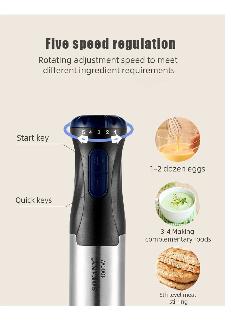 4 in 1 1000W Electric Hand Blender,stainless steel blade hand blender, meat and vegetable immersion, egg juicer set