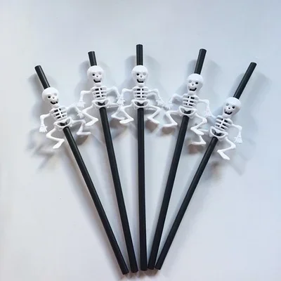5Pcs Halloween Straws Home Party Halloween Decoration Holiday Bar Party Decoration Halloween Cartoon Skull/pumpkin Straws