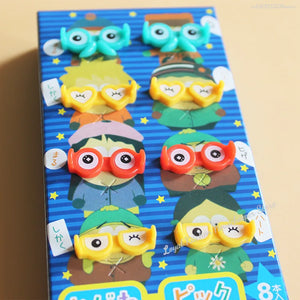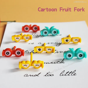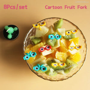 8pcs Cartoon Glasses Fruit Fork Mini Cartoon Children Snack Cake Dessert Toothpick Bento Lunches Party Decoration