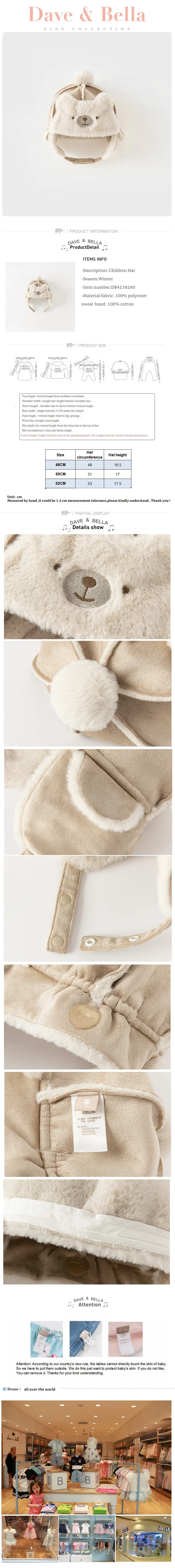 Dave Bella Baby Cute Bear Hat Boy Girls Winter Children Windproof Ear Protection Kids Light Khaki Warm Hats DB4238280