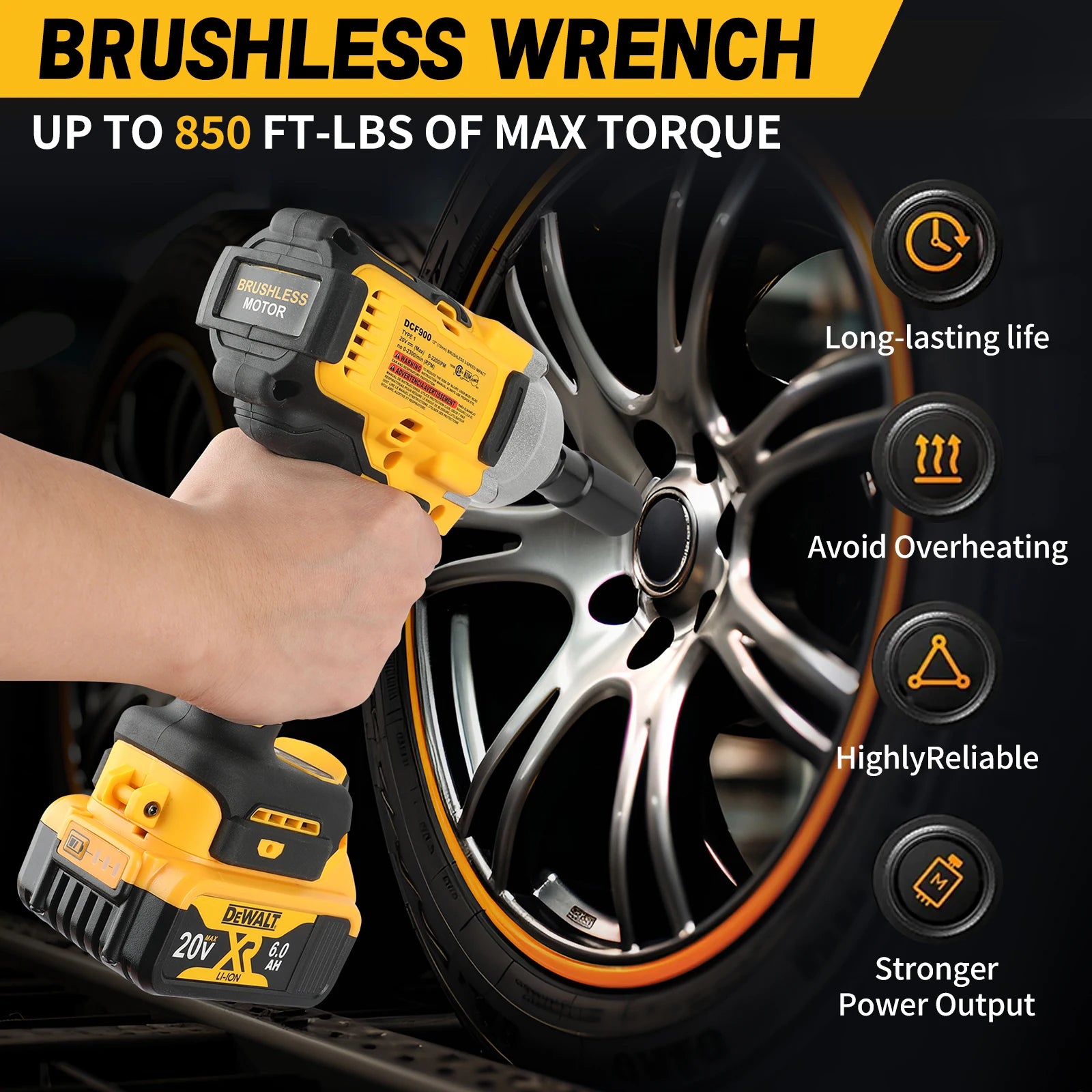 DEWALT DCF900 20V 1/2" Impact Wrench,features a brushless motor Its high torque output makes an ideal choice for tackling tough