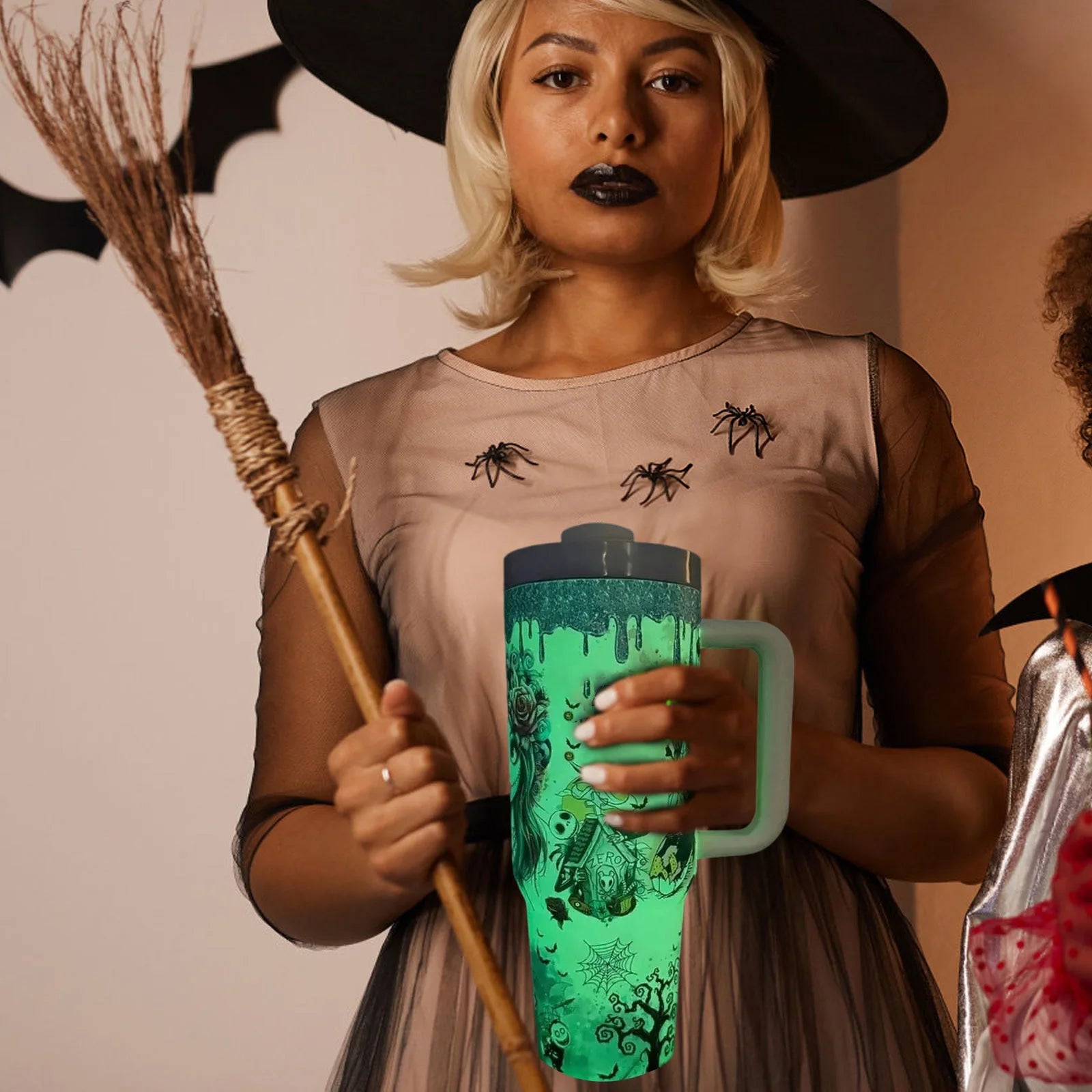 Glow in the Dark Halloween Travel Mug,Insulated Stainless Steel Halloween Coffee Tumbler, Spooky Cups for Adults, Festive Glow i