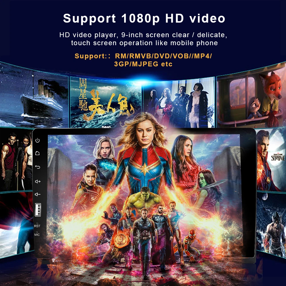 Hikity 9" Touch Screen Universal 1 din Car MP5 Player Bluetooth FM Radio Receiver Autoradio Support Rear View Camera TF/USB