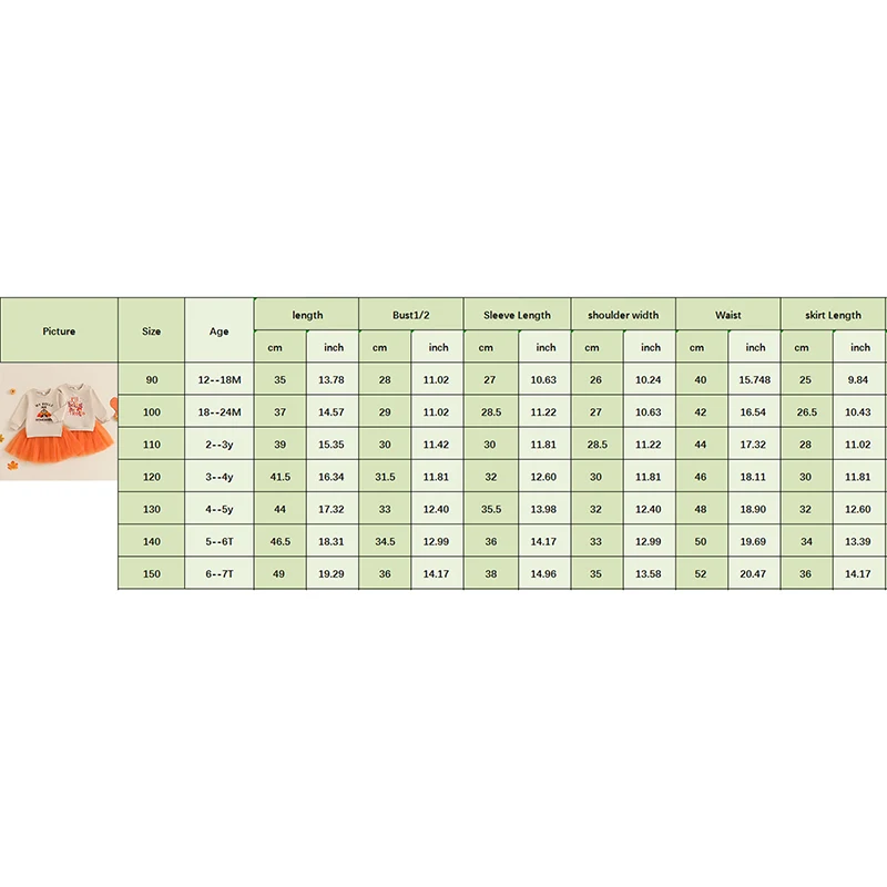 Kids Baby Girl Thanksgiving Outfits Letter Embroidery Long Sleeve Sweatshirt and Orange Tulle Skirt 2 Pcs Party Sets 1-7Years