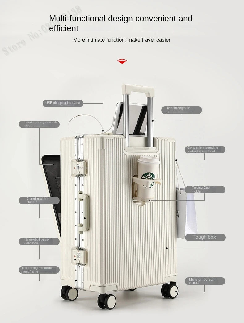 KO-KU New Front Opening Travel Suitcases 20/24/26/28 inch carrier Aluminum Frame Large Capacity Luggage USB Charging TSA Lock
