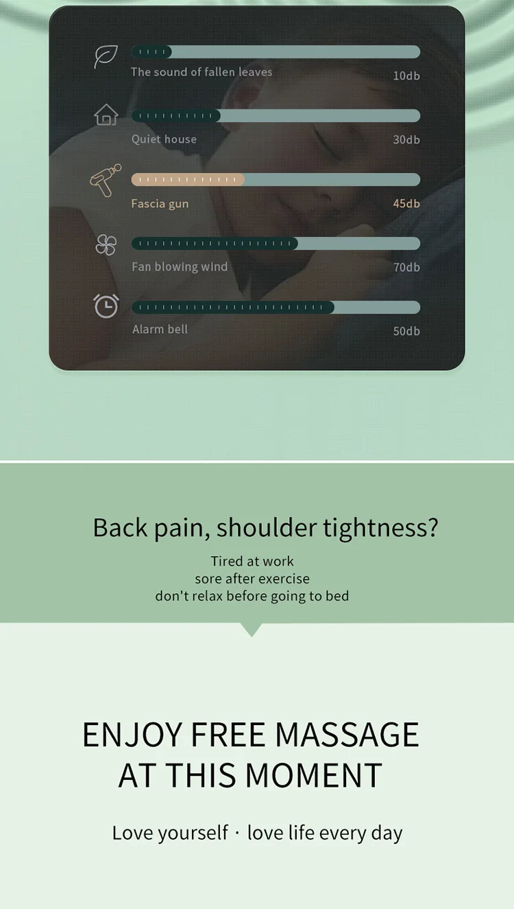 Vibrate deep muscle groups, improve local blood circulation speed, relieve fatigue and pain, and help the soft tissues of the body recover vitality.