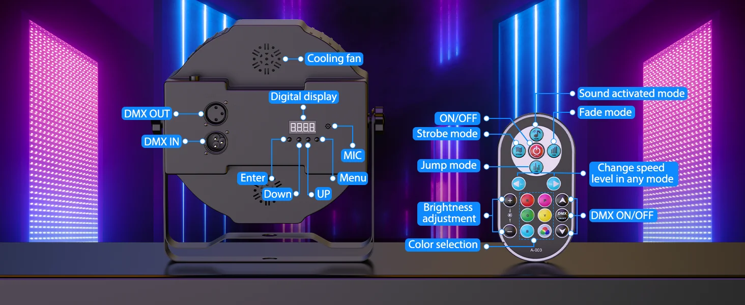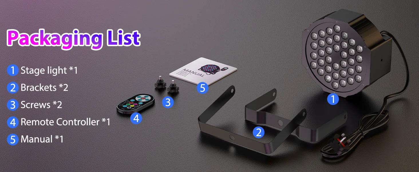 LeLeght 4 Pcs Par Light 36 RGB LED Stage Light Party Light DMX512 With Remote Control For DJ Party Show Halloween Christmas