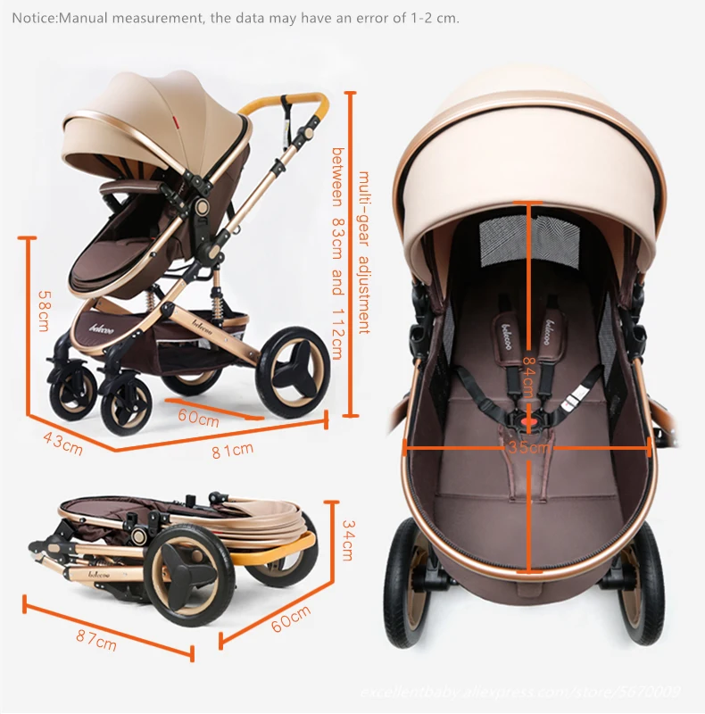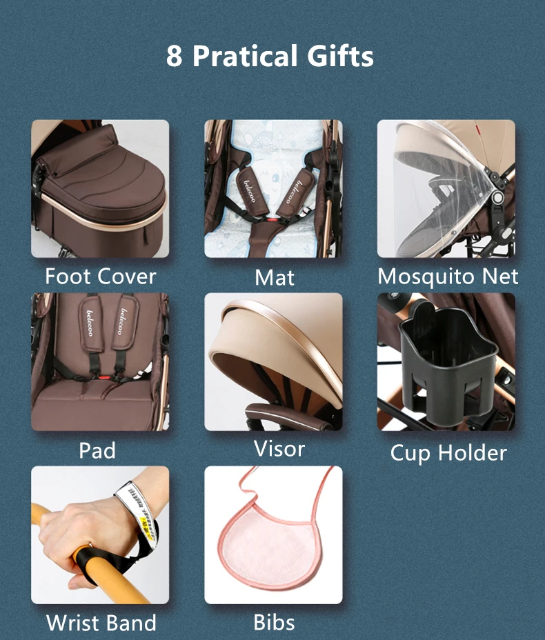Luxurious 3 in 1 Portable Travel Baby Stroller High Landscape Aluminum Frame Foldable Pram Newborn Infant Four-Wheel Carriage