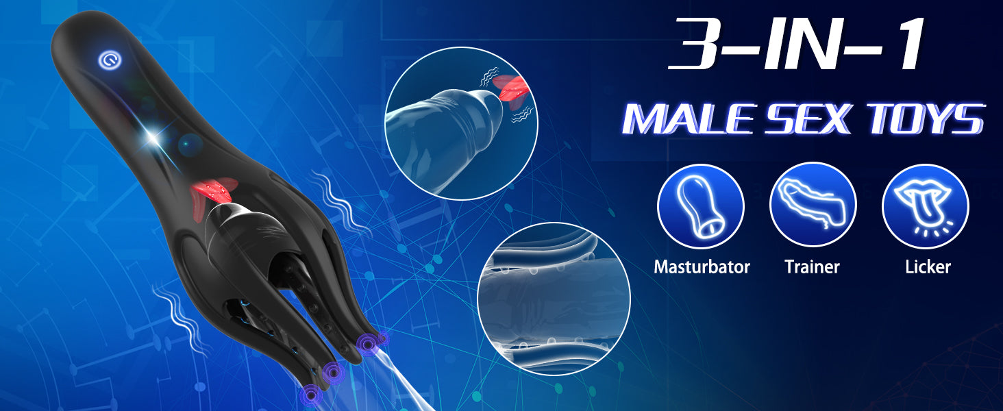 ❤ 3 IN 1 Sex Toys for Men - This cock vibrator sex toy is multifunctional, it combines glans trainer, tongue licking vibrator, and male masturbator in 1. The male stroker offers 10 vibrations to enhance endurance, 10 tongue licking frequency modes to give you the licking feeling, and a