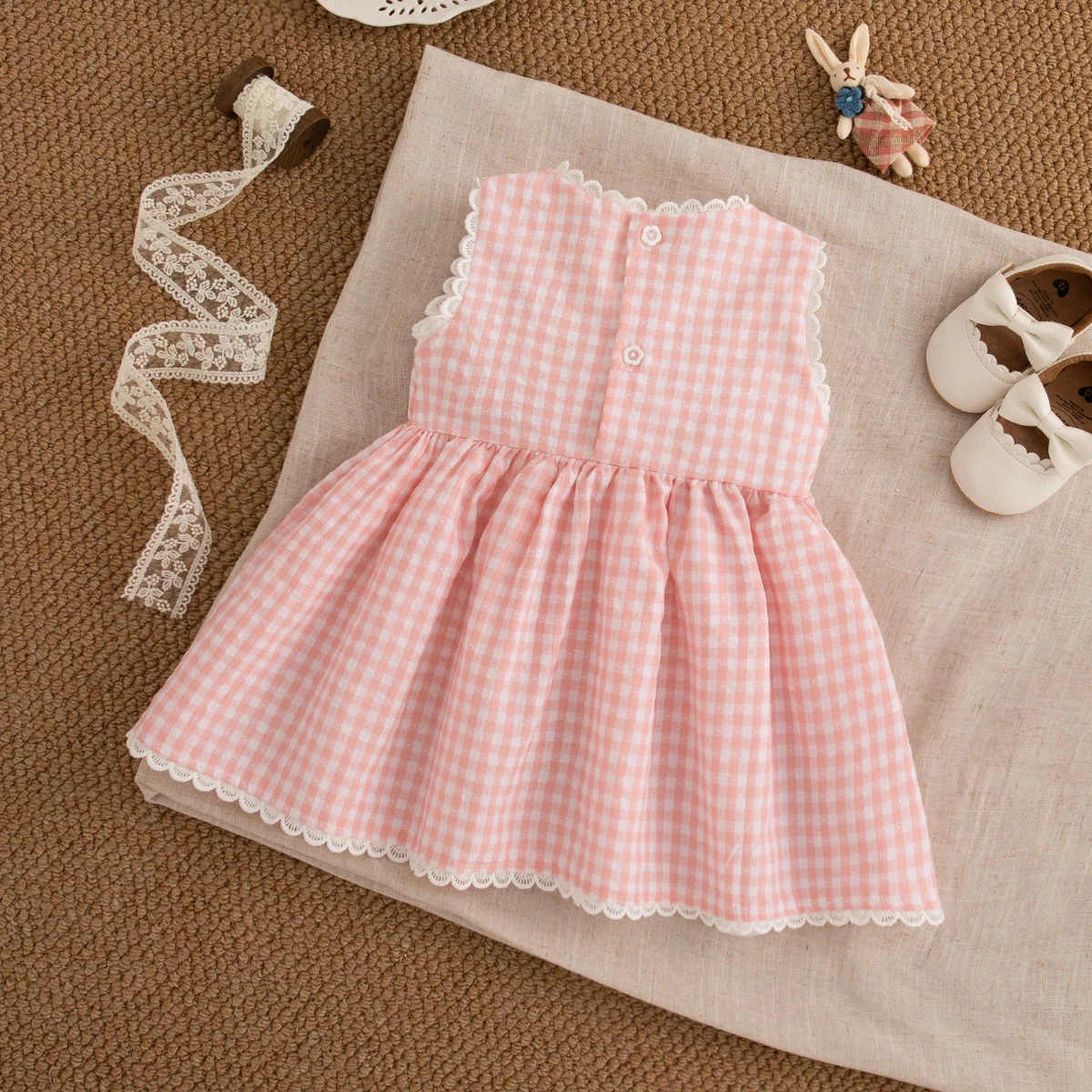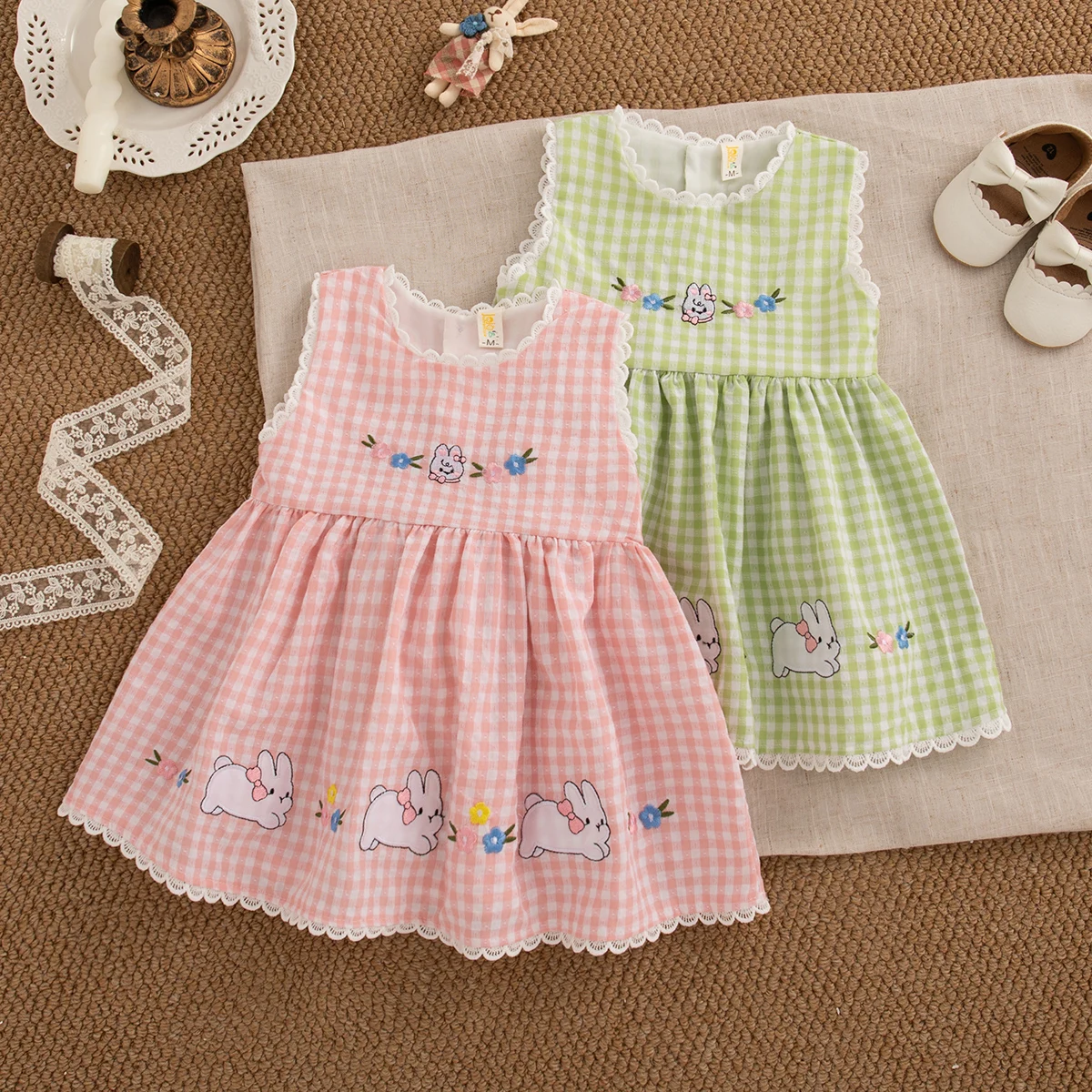 Sweet White Lace Baby Girl Dress, Summer New Cute Little Plaid Rabbit Children'S Clothing (9 Months -4 Years Old)