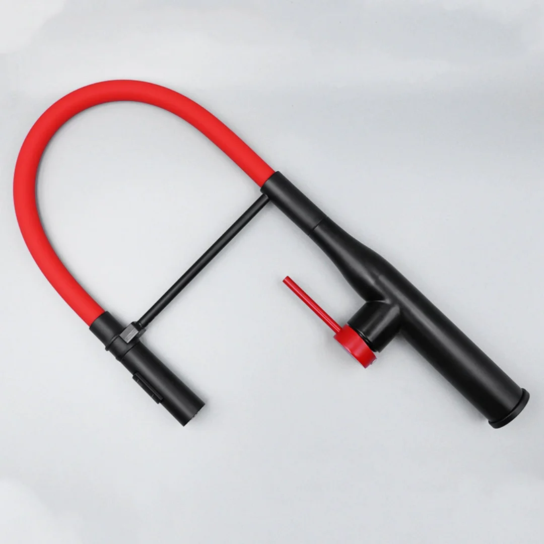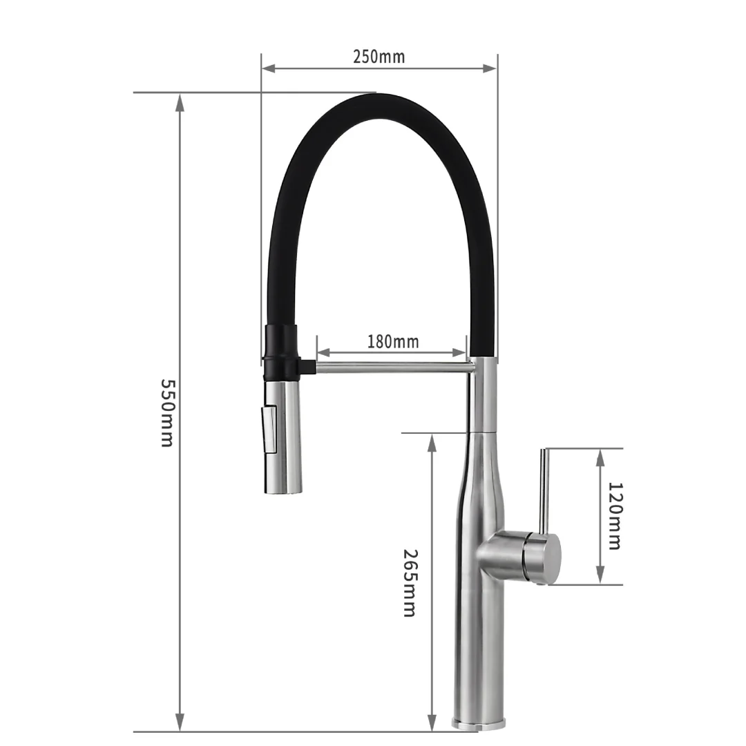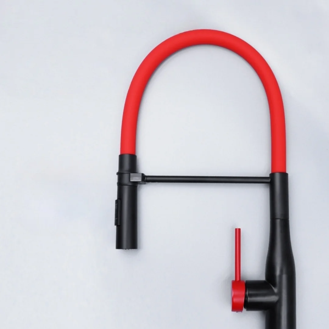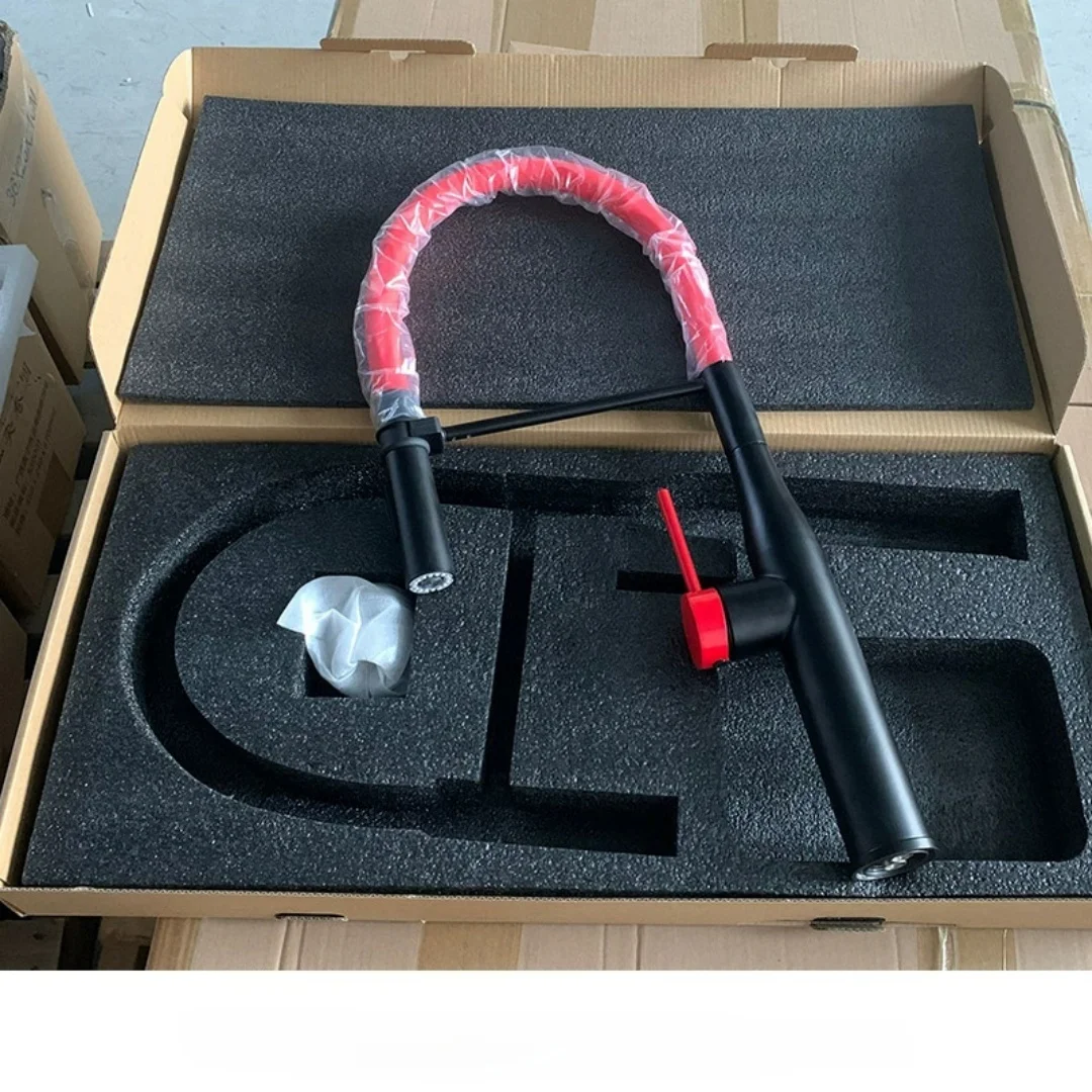Tuqiu Gray Pull Down Sink Faucet Brushed Nickel Kitchen Faucet Tap Hot and Cold Red Spring Faucet SUS304 Rotation Pull Down