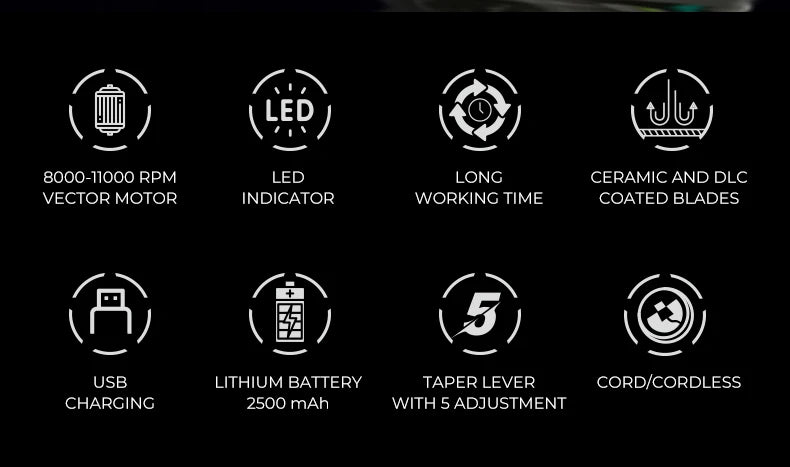 Function: wet haircut,dry haircut,Fast Charging,Charging indication,Battery operation