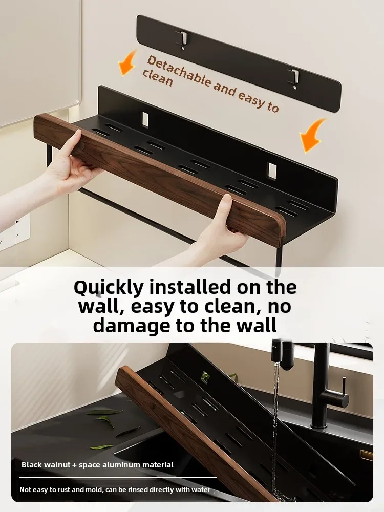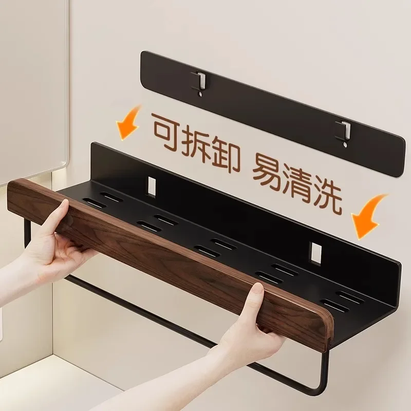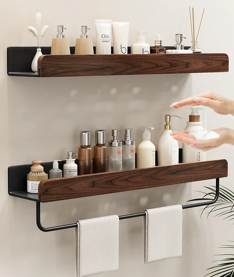 Walnut bathroom toilet shelf no punch toilet sink restroom wall storage towel racks