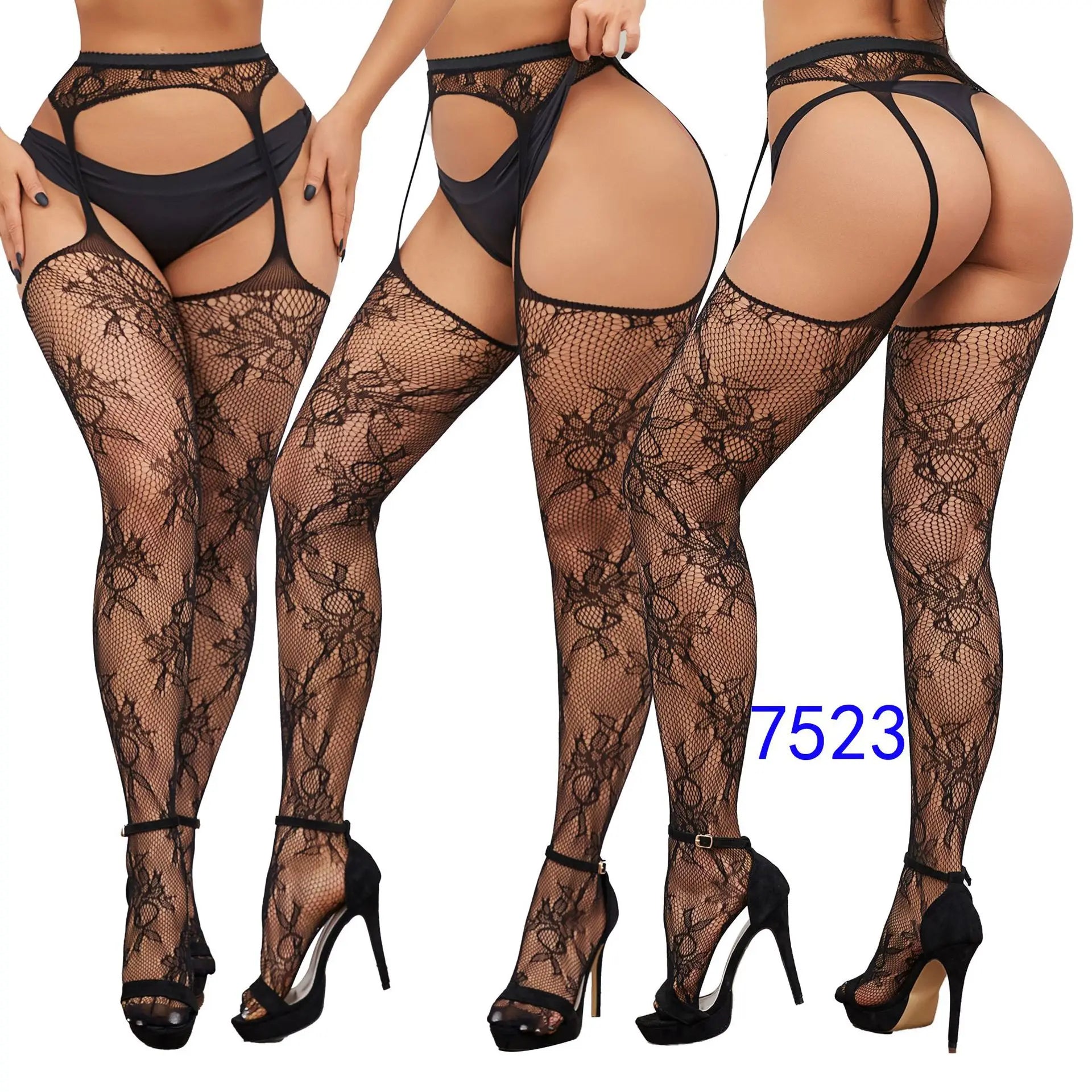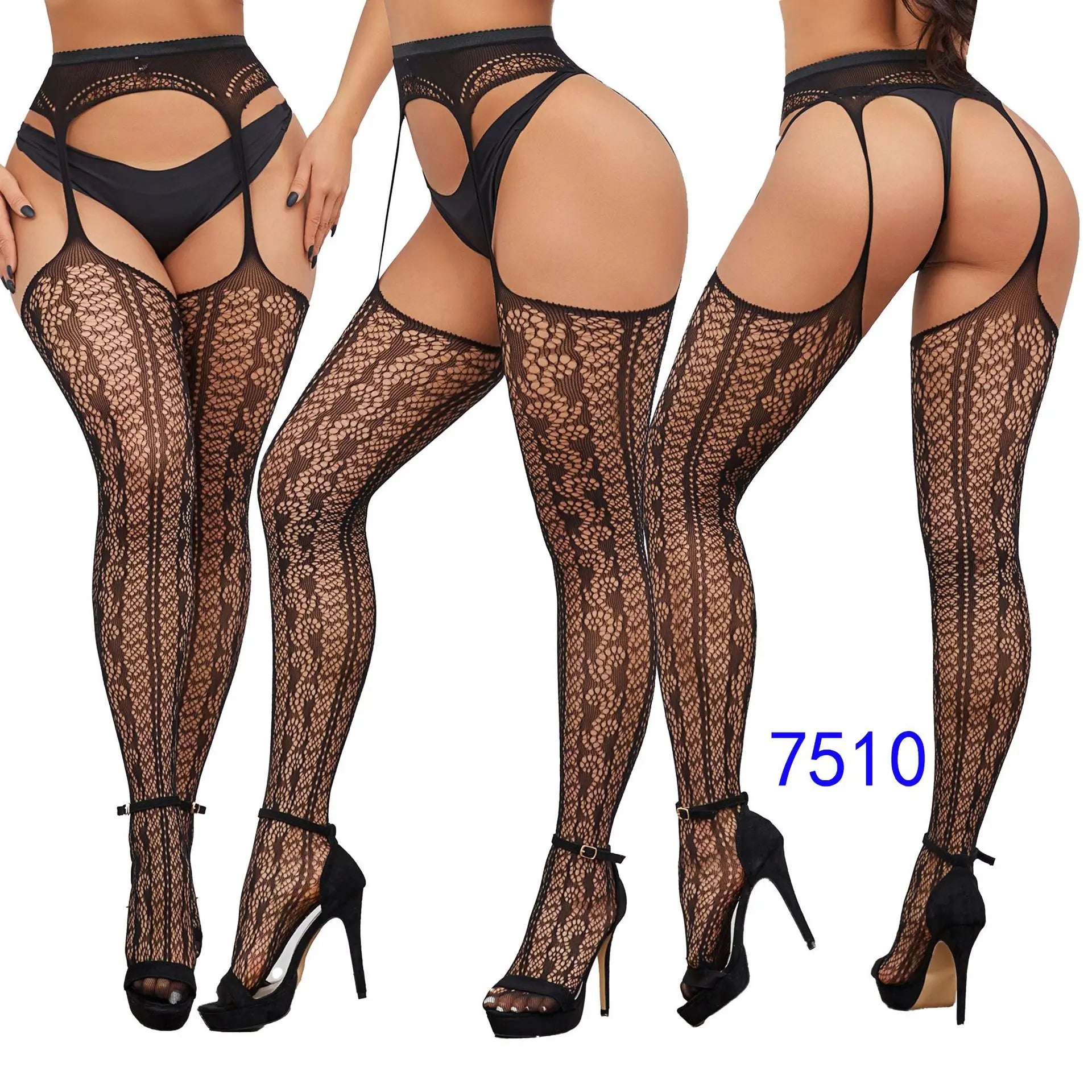 Women Sexy Suspender Stockings Open Crotch Pantyhose Fishnet Tights Hot Fashion Night Party Mesh Net Leggings Garters Hosiery