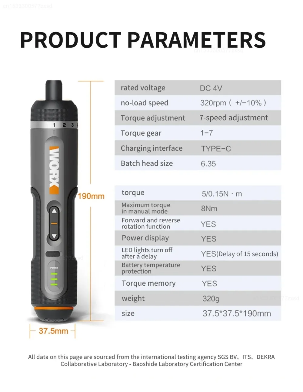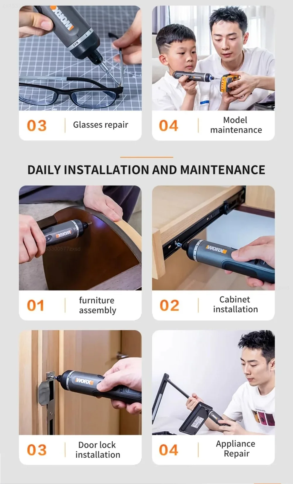 Worx 30 Bit Sets Power Tools WX242 Electrical Screwdriver Set Smart Cordless Drill Screwdrivers USB Rechargeable Set Home Repair