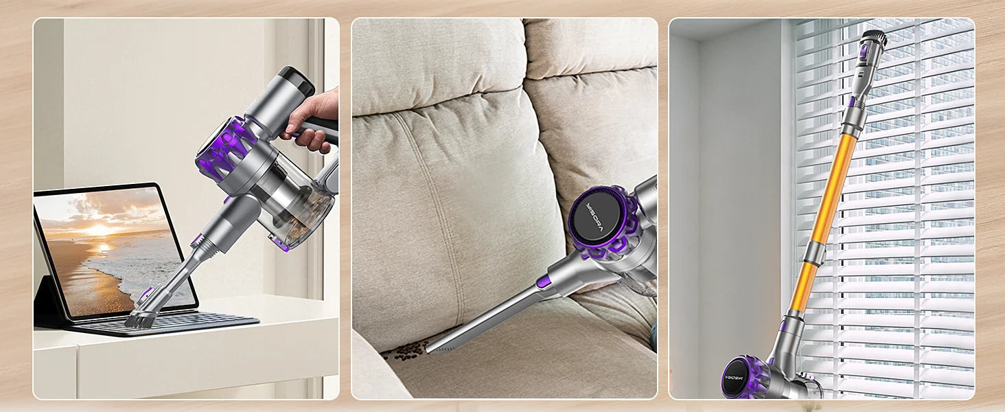 40,000 PA strong suction power and 55 minutes: YISORA battery vacuum cleaner S3P adopts advanced 350 W brushless motor, produces 40,000 Pa strong suction power in MAX mode. With